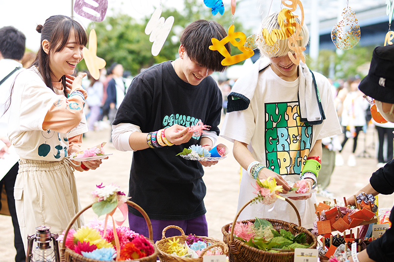 2023年5月20日・21日に東京都・江東区の若洲公園で開催された都市型野外音楽フェスティバル「TOKYO METROPOLITAN ROCK FESTIVAL 2023」(以下、METROCK東京2023)にて、株式会社テレビ朝日(以下、テレビ朝日)とのコラボレーションにより、廃材を活用したフラワーリストバンドを制作するワークショップを開催しました。