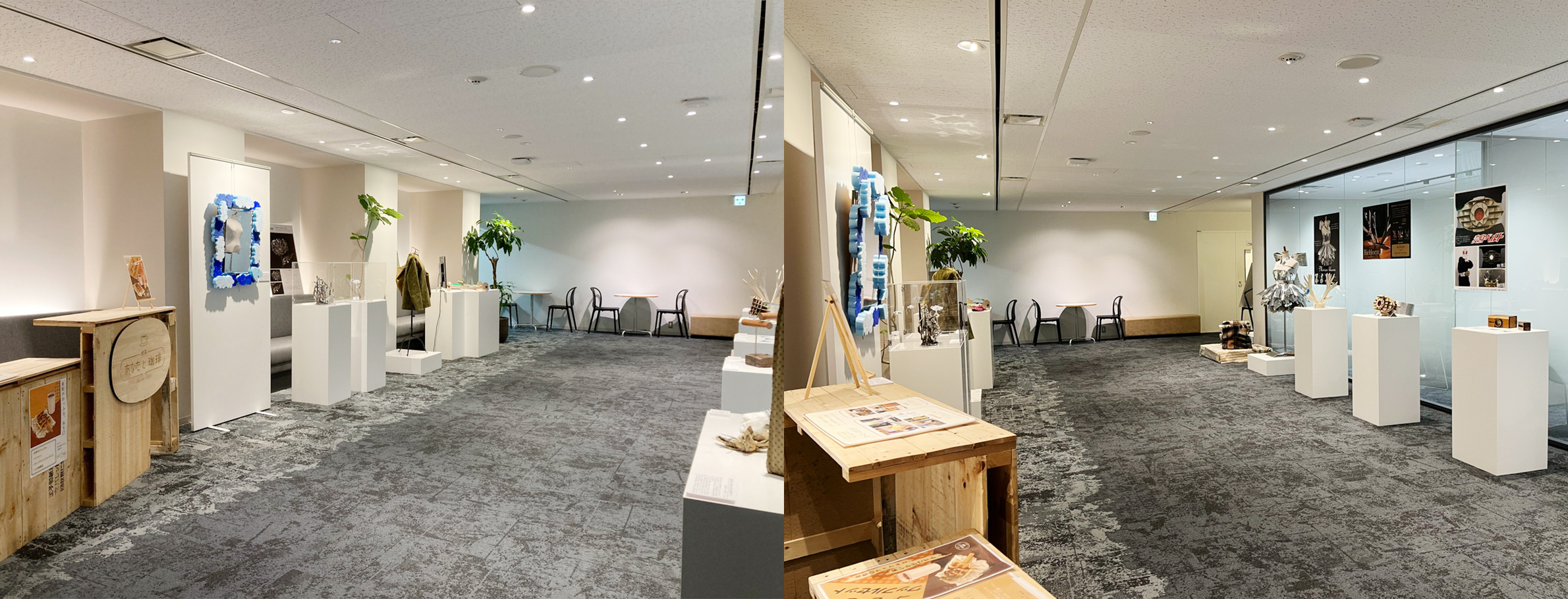 端材PJでは什器の製作、会場設置・撤去、プレゼン会参加と様々な面から関わらせていただきました。素敵な作品がより見栄えするよう什器は白色で統一しました。