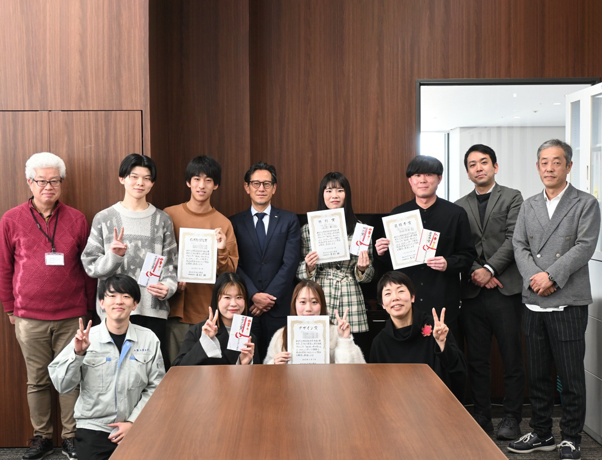 展示後は、社員投票を踏まえた社内審査を経て、各受賞作品が決定し、表彰式は各校にて行いました。
