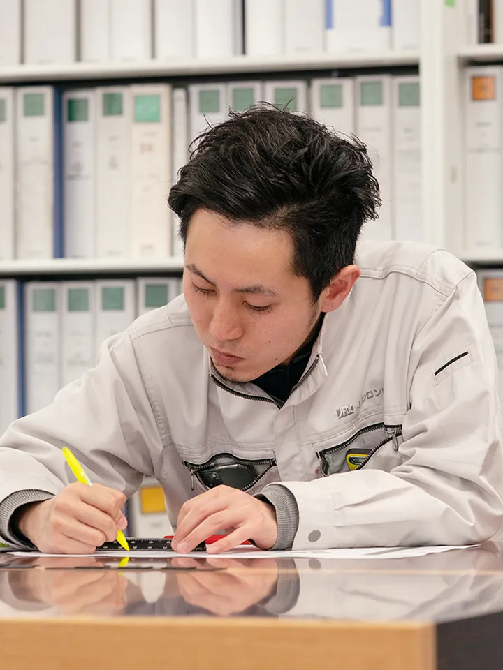 プロジェクトのクリエイティブエンジニアです。お客様がより満⾜いただける形を創造し、完成予想パース、図⾯、試作品により、提案しながら形を図⾯にまとめ、施⼯管理職に繋げます。デザイン、法規、材料、構造の深い専⾨知識と創造⼒が必要な職種です。