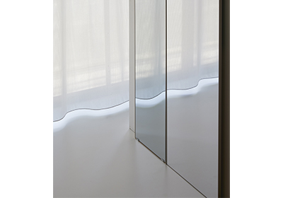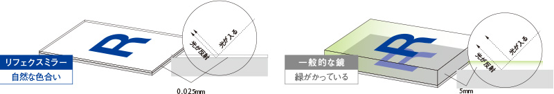 リフェクスの反射空間はきわめて明るく、実空間と虚空間の連続性に優れています。天井・垂壁材として用いれば、その吹き抜け効果は抜群です。表面鏡に匹敵する反射精度を誇り、光学機器・映像システム等に広く利用されています。